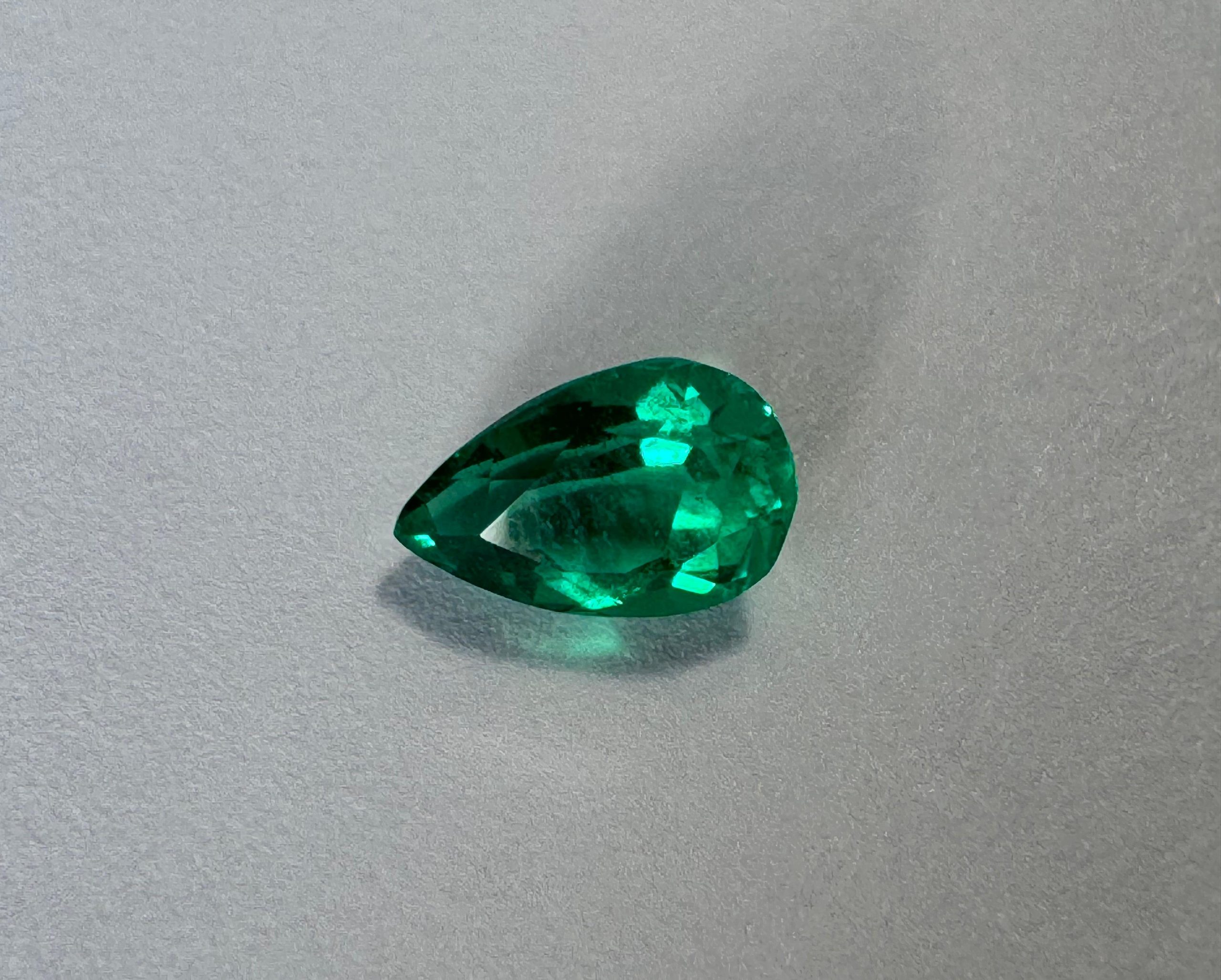 Emeraude Colombienne en Poire 1.04 cts certifiée