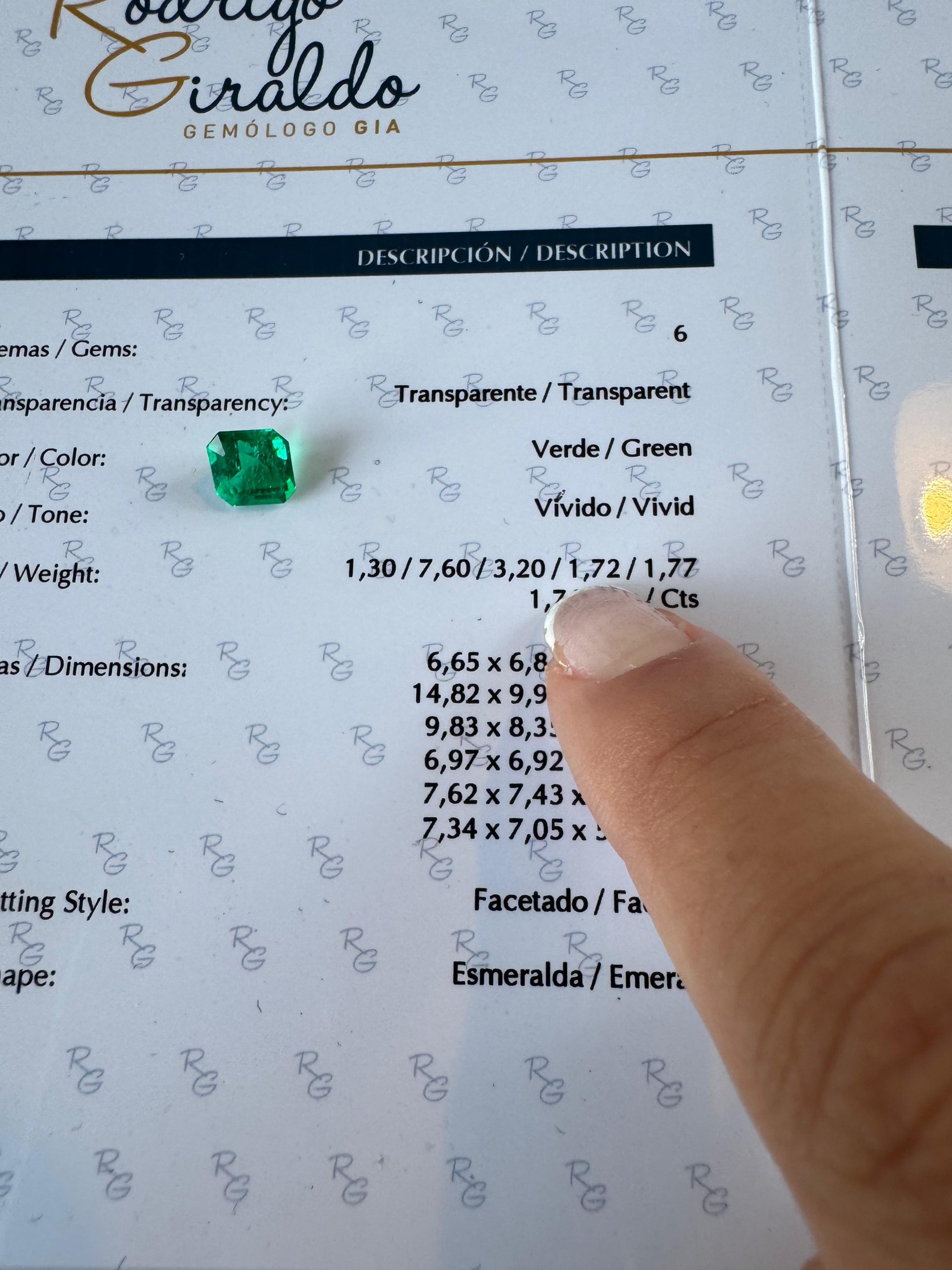 Avec un poids précis de 1.72 carats, cette pierre arbore une taille carrée classique, qui met en valeur l’intensité de son vert profond et captivant. Sa transparence et son éclat exceptionnel en font une pièce idéale pour un bijou délicat ou une collection raffinée.