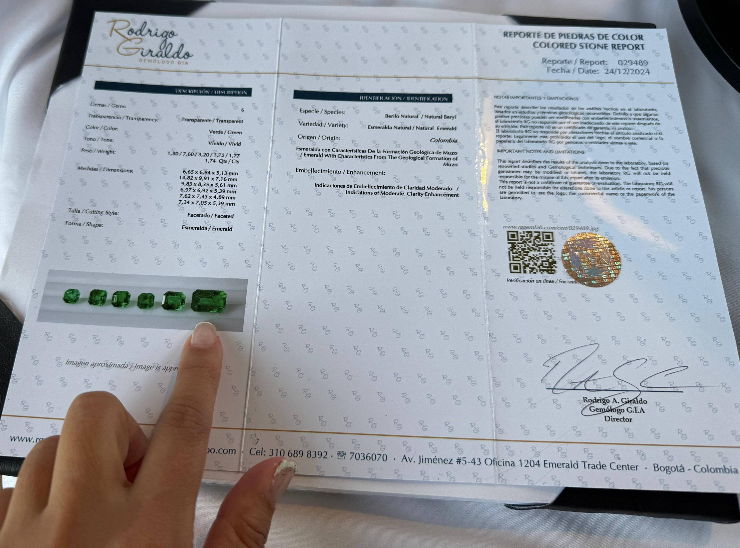 une émeraude huilée d’une rare élégance, directement extraite des mines de Muzo, en Colombie, reconnues comme les plus belles émeraudes au monde.